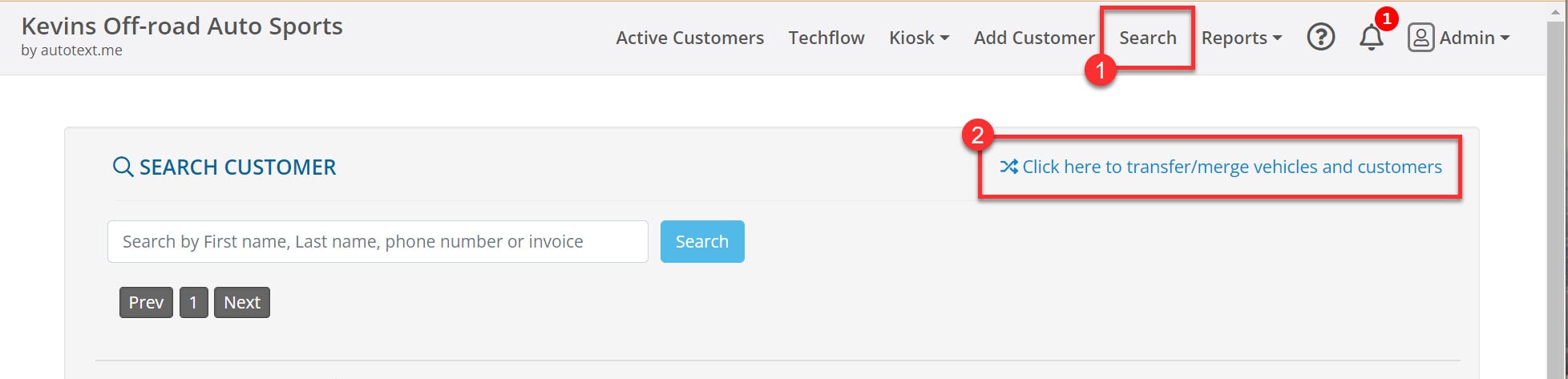Getting Started Select Search at the top of the dashboard. Once on the Search page, select Click here to transfer/merge vehicles and customer in the top right corner highlighted in blue. Select Transfer a vehicle from one customer to another customer ...